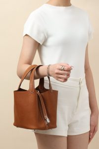 A strap has been added to the opening of the Fubao leather bucket bag, and it is equipped with an “H” special lock that can be carried by hand and is lightweight